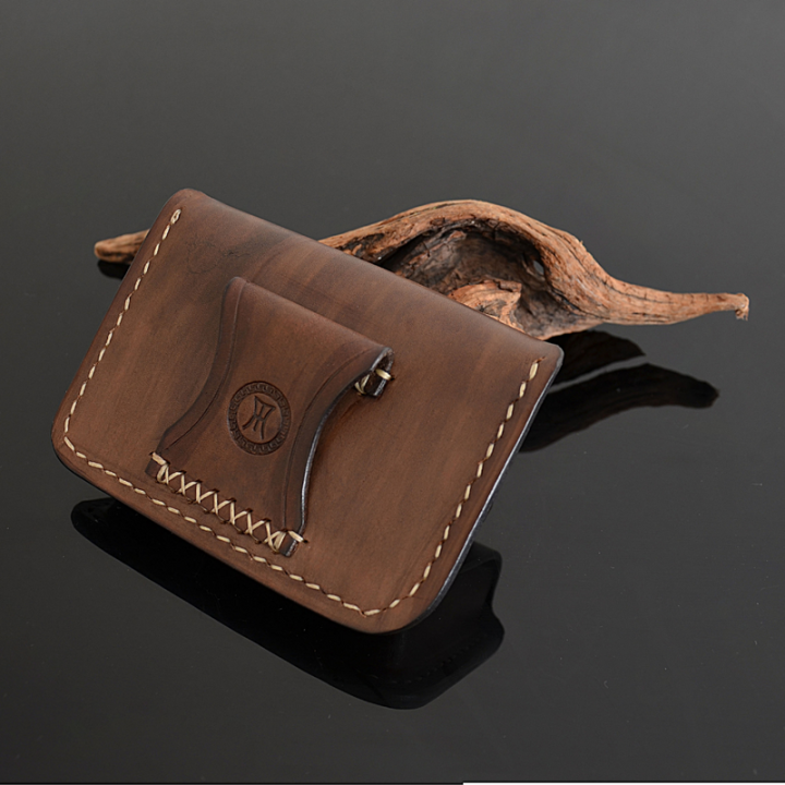 Custom Bushcraft Leather Belt Pouch For Altoids | Including Pull Up String / Dark Vintage Brown | Beige Stitching / Belt Loop