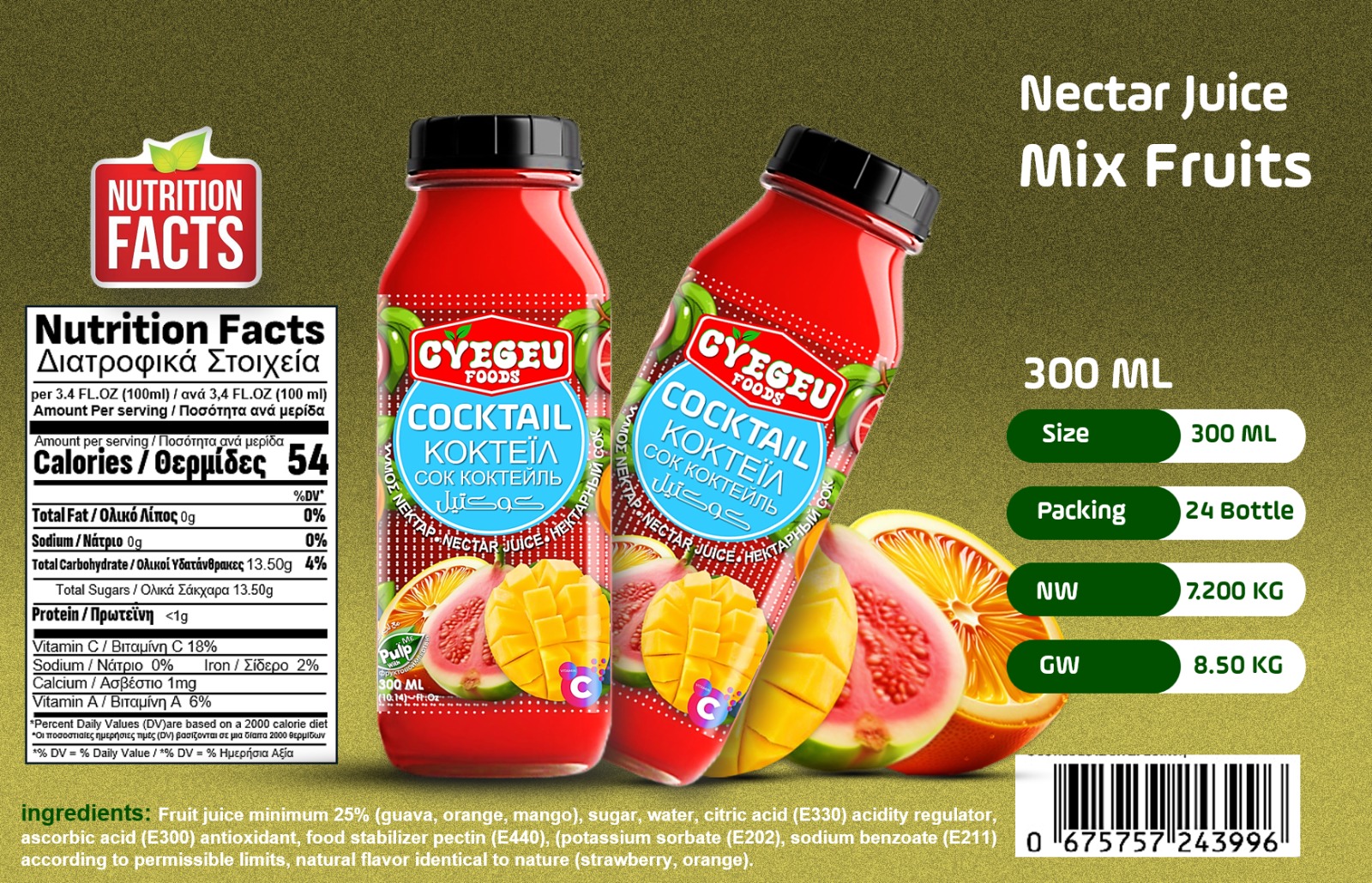 Cocktail Fruit Drink 300ML /24 Bottel (CyEgEu.Foods)