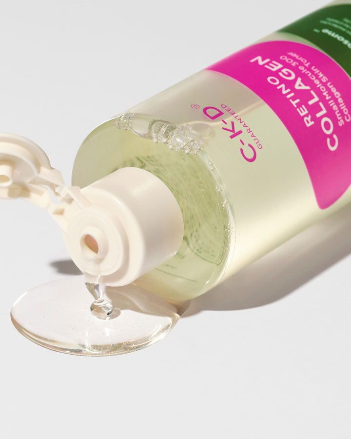 A skin firming daily toner to deliver the waterful firmness and bounce to the skin. 77% 300 Dalton low molecule collagen in the formula penetrates deeper into the skin, bringing the excellent hydration to dry skin with healthy radiance. 3rd generation retinal in the formula softens the skin texture and improves fine lines.