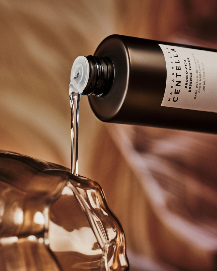 A nourishing essence toner for soothing, hydration replenishing, skin softening, infused with top-quality centella asiatica extract instead of purified water. Probio-cica formula based on fermented Centella asiatica extract not only helps control the excessive sebum but improves the skin elasticity by strengthening the skin barrier. This toner also includes ceramide NP and hyaluronic acid to provide the deep hydration to the skin.