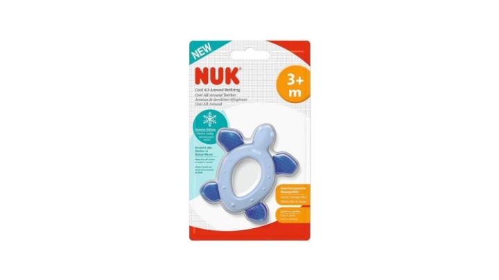 Sooner or later, your baby starts to put everything in his mouth with his hands. At the same time, frequent saliva flow begins, as well as very light sleep. All of the above are indications that his first teeth are rising. Especially for infants, this can be an unpleasant experience, as teething is a particularly painful stage. Often infants want to chew and bite something to reduce the pain of teething. The NUK Cool All-Around teething ring contributes to this by massaging the gums and facilitating the teething process. The cooling and massage elements of the teething ring are designed to reach every part of the mouth. So your baby can regain his smile!