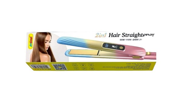 Straighten your hair or create wavy curls with this 2-in-1 hair straightener. Features: Ceramic plates that reach temperatures between 120-230 degrees. Temperature selection with a button. White light indicator that stops flashing when the temperature is ready. LCD display. Automatic shut-off after 60 minutes of non-use. Professional results at home. Temperature: 120 ° C-230 ° C. Voltage: 100-240V 50/60Hz. Plate type: ceramic.