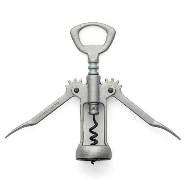 he "de Gaulle" winged corkscrew and foil cutter Iconic tool since 1970 in L’ Atelier du Vin’s range, the “de Gaulle” still remains timeless. Characteristic* Its two large levers gently but firmly extract the cork.* The inside of the base is covered in soft plastic so as to not chip the neck.* Its handle is also a bottle opener.* To be carefully cleaned after use. Finish* Made in Europe.* Teflon-coated worm.* Body in raw zamak, without chrome or paint.* Transparent protective varnish.