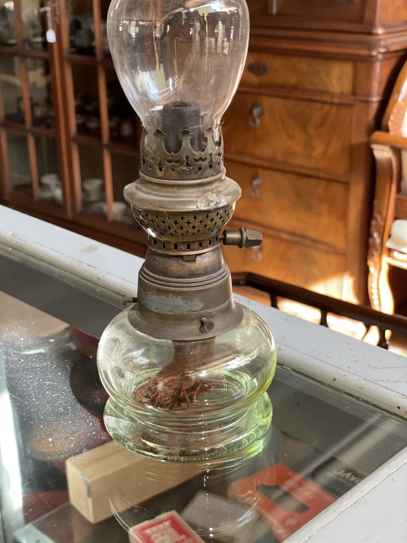 Experience the grandeur of the Victorian era with this exquisite antique oil lamp, boasting an ornate base fit for royalty. Rich in detail and steeped in history, this lamp evokes the elegance and sophistication of a bygone era. Place it on a mantelpiece, side table, or prominent display stand to showcase its beauty and craftsmanship. Experience the grandeur of the Victorian era with this exquisite antique oil lamp, boasting an ornate base fit for royalty. Rich in detail and steeped in history, this lamp evokes the elegance and sophistication of a bygone era. Place it on a mantelpiece, side table, or prominent display stand to showcase its beauty and craftsmanship. Let its warm glow envelop your space, creating an atmosphere of refined luxury and timeless charm. A perfect addition to any Victorian-inspired decor, this lamp is a treasure to behold.