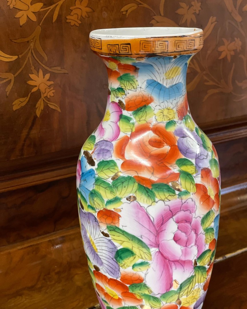 Imagine this vase in a sun-drenched room filled with plants and textiles, where its painted flowers echoed the garden outside the window. Today, it invites you to enliven your space—with every placement offering a touch of history, beauty, and handcrafted charm.