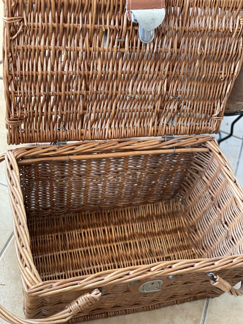 Discover the charm and functionality of our Vintage Picnic Basket with Leather Strap. Crafted from high-quality wicker, this timeless picnic basket is designed to elevate your outdoor dining experience. The 2 strap ensures easy carrying, leather strap for safety while the spacious interior provides ample room for all your picnic essentials. Discover the charm and functionality of our Vintage Picnic Basket with Leather Strap. Crafted from high-quality wicker, this timeless picnic basket is designed to elevate your outdoor dining experience. The 2 strap ensures easy carrying, leather strap for safety while the spacious interior provides ample room for all your picnic essentials. Ideal for romantic getaways, family outings, and garden parties, this classic picnic basket combines style and practicality. Enjoy alfresco dining with a touch of nostalgia. Order now and create unforgettable memories with every picnic!