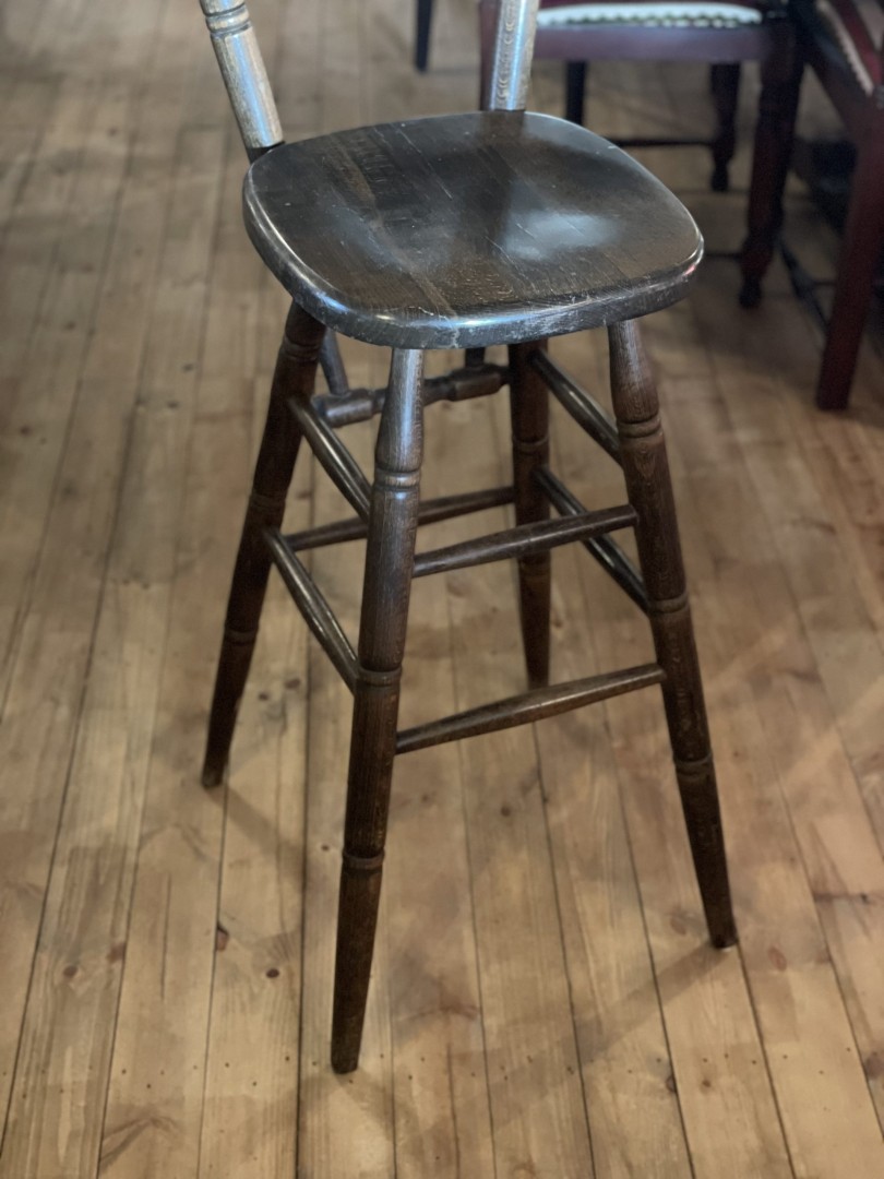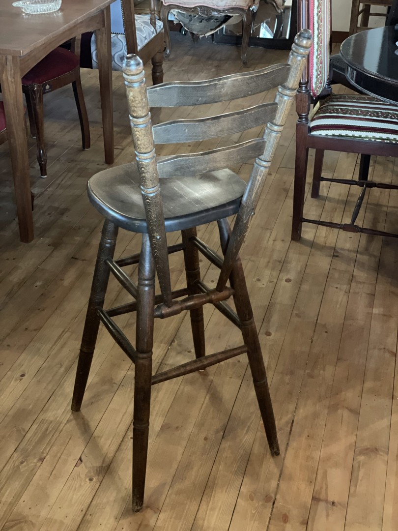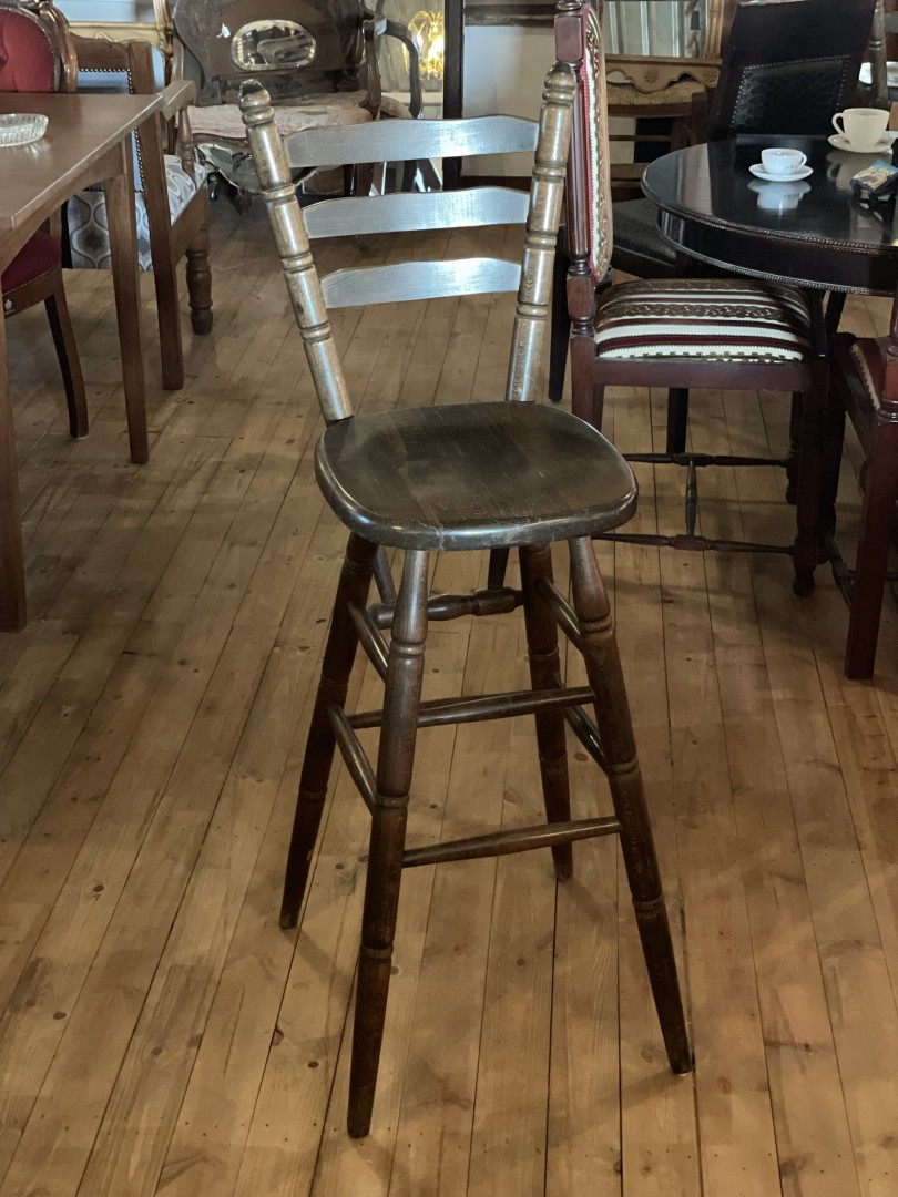 Elevate your home decor with this timeless vintage bar stool, crafted entirely from solid wood. This sturdy and stylish piece features a classic rustic design that effortlessly blends with various interior styles, from farmhouse to industrial. The bar stool boasts a comfortable, contoured seat and a supportive ladder-back, ensuring both aesthetic appeal and ergonomic support. Elevate your home decor with this timeless vintage bar stool, crafted entirely from solid wood. This sturdy and stylish piece features a classic rustic design that effortlessly blends with various interior styles, from farmhouse to industrial. The bar stool boasts a comfortable, contoured seat and a supportive ladder-back, ensuring both aesthetic appeal and ergonomic support. \n \nPerfect for kitchens, bars, or dining areas, this vintage bar stool stands at a convenient height, making it ideal for high counters or bar tables. Its durable construction ensures longevity, while the natural wood finish adds a warm, inviting touch to any space.