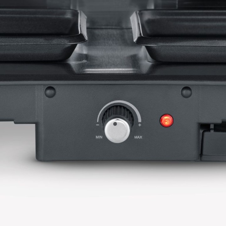 Transform your culinary experience with the SEVERIN Raclette Grill. This versatile raclette grill comes with 8 non-stick coated pans, perfect for creating delicious, personalized meals. The full non-stick coated plate ensures effortless cooking and cleaning, while the adjustable thermostat allows precise temperature control for perfect results every time.
