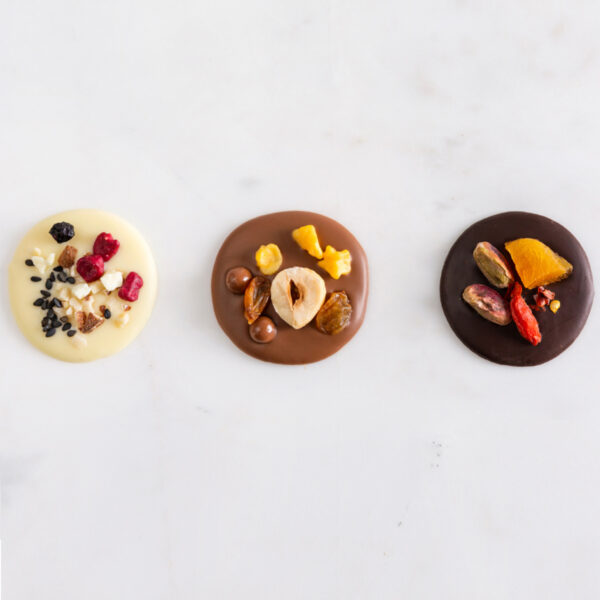 Assortment of Dark, Milk and White Chocolate Mendiants.