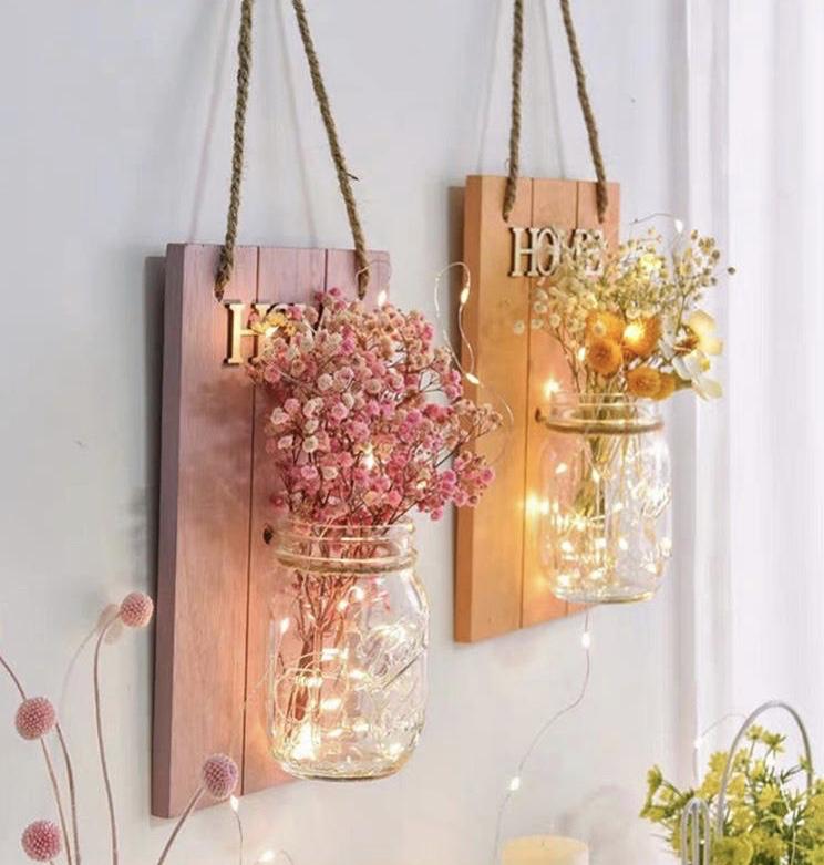 Wall hanging preserved babybreath arrangement.