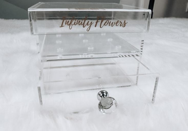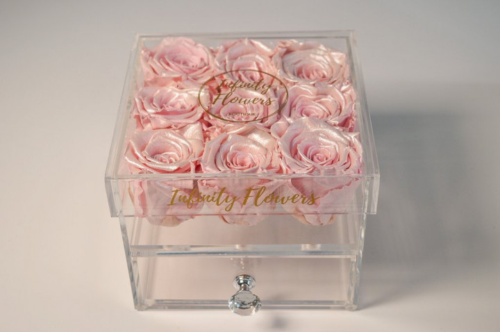 Los mejores Nueve features 9 stunning infinity roses in a transparent plexi glass box with drawer that protects the roses while enhancing its beauty.