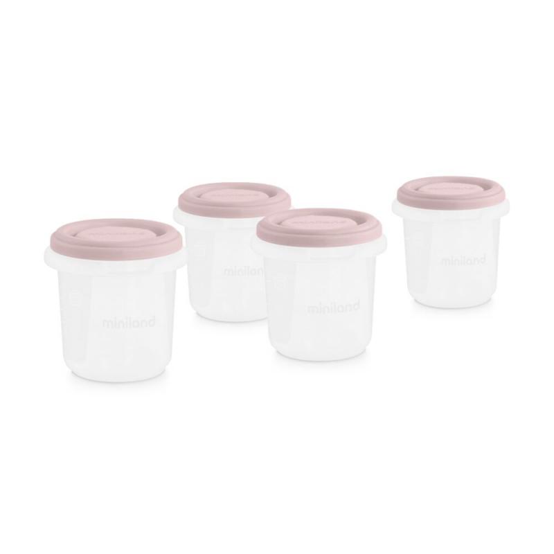 Miniland 89465 Set Of 4 Blush, Airtight 250 Ml Food Containers, Dark Purple (Freezer Safe, Microwave-Safe, Dishwasher Safe)