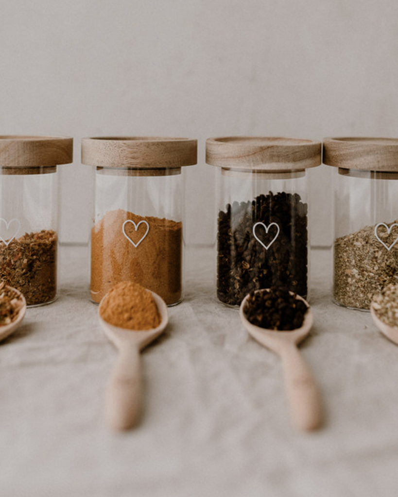 We can't believe how beautifully you can store your condiments and supplies with our mini glass storage jars. All glasses are made of high quality and durable borosilicate glass and are finished with a white print. They come with an acacia wood lid engraved with our logo and motto "confetti for the soul". Borosilicate glass is a very strong material that is dishwasher safe and 100% recyclable. Our lids are made from untreated acacia wood, so each lid is unique and unique in its structure. A silicone ring for airtight sealing is of course also included.