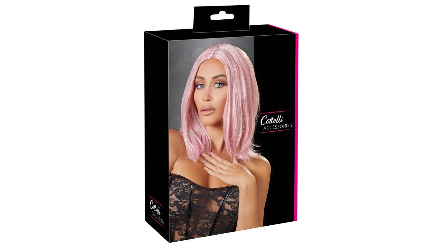 A great party look! Pink, shoulder-length wig in a bob style. 30 cm long. 100% polyester. The wig can be adjusted for a non-slip fit. Important: do not use curling tongs or straighteners on the wig. Please use a special wig shampoo on the wig.