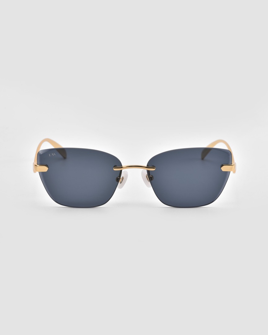 The Spark sunglasses bring a daring lightness to the collection with their rimless cat-eye silhouette, a design that feels both refined and boldly futuristic. From the front, the frame is minimal and sleek, while the temples reveal a sculptural 3D curve, catching the eye with a graceful play of form and movement.