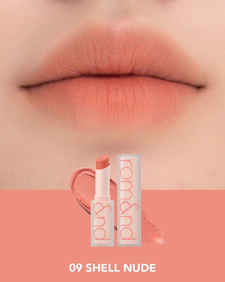 Rom&nd matte lip edition! ZERO MATTE LIPSTICK is a matte and silky lipstick to express naturally vivid color on your lips. Long lasting tinted color stays on your lips all day while keeping your lips moisturised.