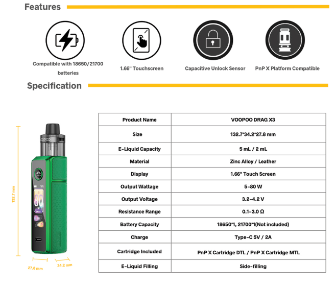 Voopoo Drag X3 Pod Pnp X 5Ml 18650/21700- Glow Pink