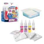 Aqua Gelz! Unique Buzzy Figures! Create swirly figures in water in the easiest way. Put one or more of the colored gels in the mold and dip it in the special water. After a few seconds, slightly shake the mold left and right and you will see your creation come to life. Leave it a few seconds longer to harden or slurp it up instantly! Important Tip: Imagination has no limits! You can make figures taken from tropical islands or from fairy tales of princesses: Each set includes: • 1 Reusable Tank • 4 Colored Gels (in the colors of the theme) • 6 Molds (depending on the nature of the theme) • 2 Bags with the Special Solution Water