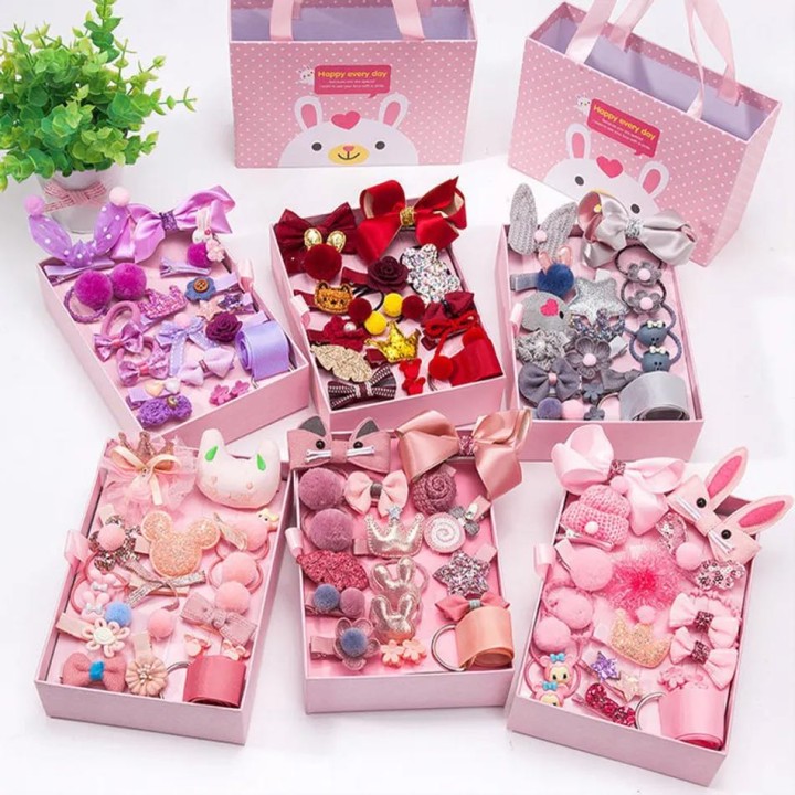 18Pcs Set Girl Hair Accessories, Mix Style Girls Hair Bows, Hair Clips, Hair Ties Crown. * Suitable For Children Over 3 Years Old * Big Clips Size: 5 Cm * Small Clips Size: 3.5 Cm * Hair Ring Size: 3 Cm