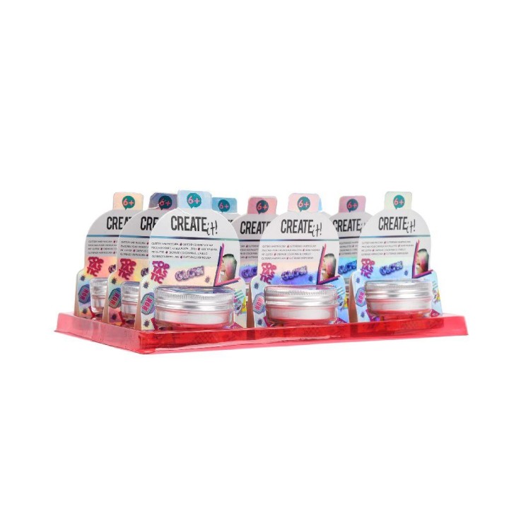 Create It! Poptastic Glittery Hair Mascara - Assortment The Create It! Glitter Hair Mascara ensures that you have great-coloured and radiant hair. Apply the hair mascara before going to a party or style your friends' hair for fun. Combine the colours of the hair mascara for an even cooler effect. This item is also great when you're done with your own hair colour because you can experiment with different bright colours. The hair mascara is easy to wash out and is temporary This item is part of an assortment and comes in different versions. The Create It! Glitter Hair Mascara is available in three different colours: blue, pink and turquoise. It is not possible to determine in advance which colour you will receive. You can indicate your preference in the comment field for on the checkout page and we will try to fulfil your request but this is not a guarantee. One is provided at random. Suggested age suitability 6 years and upwards.EU Warning: Not suitable for children under the age of 3 years due to small parts which could cause a choking hazard.