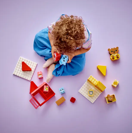 The LEGO DUPLO My First Daily Routines: Eating & Bedtime (set 10414) is a delightful and educational toy designed for toddlers aged 1½ years and older. This set helps little ones explore their feelings and daily routines through play. It includes 28 pieces, featuring four adorable animal figures: a cat and her kitten, and a bear with his cub. The baby animals have two different expressions, allowing toddlers to express how they feel about eating and bedtime.