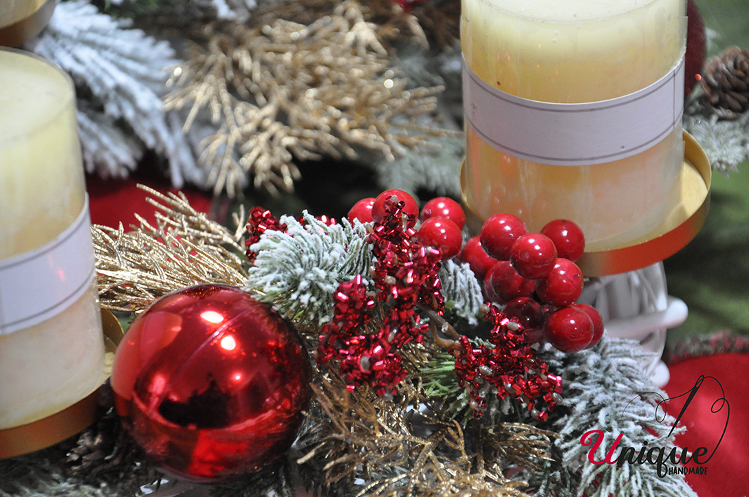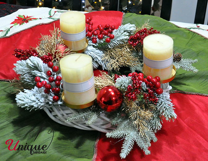 A beautiful Xmas centerpiece wreath with aromatic candles. The price include 3 aromatic candles.