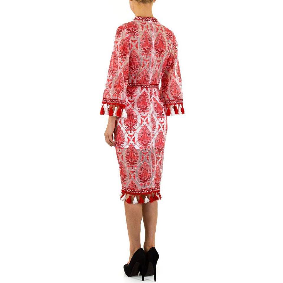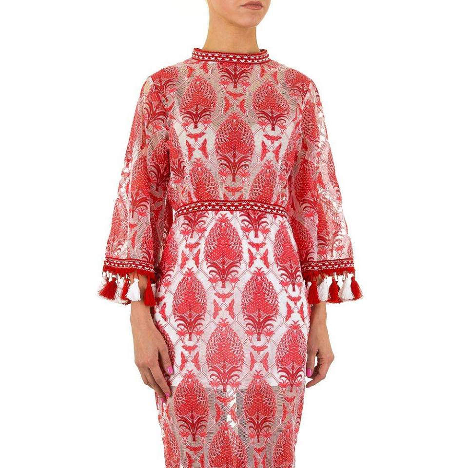 Baroque Red Lace Overlay Dress - Size S - Red