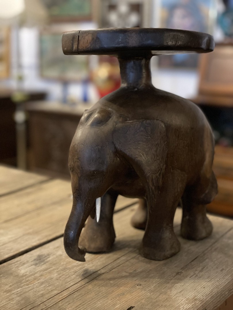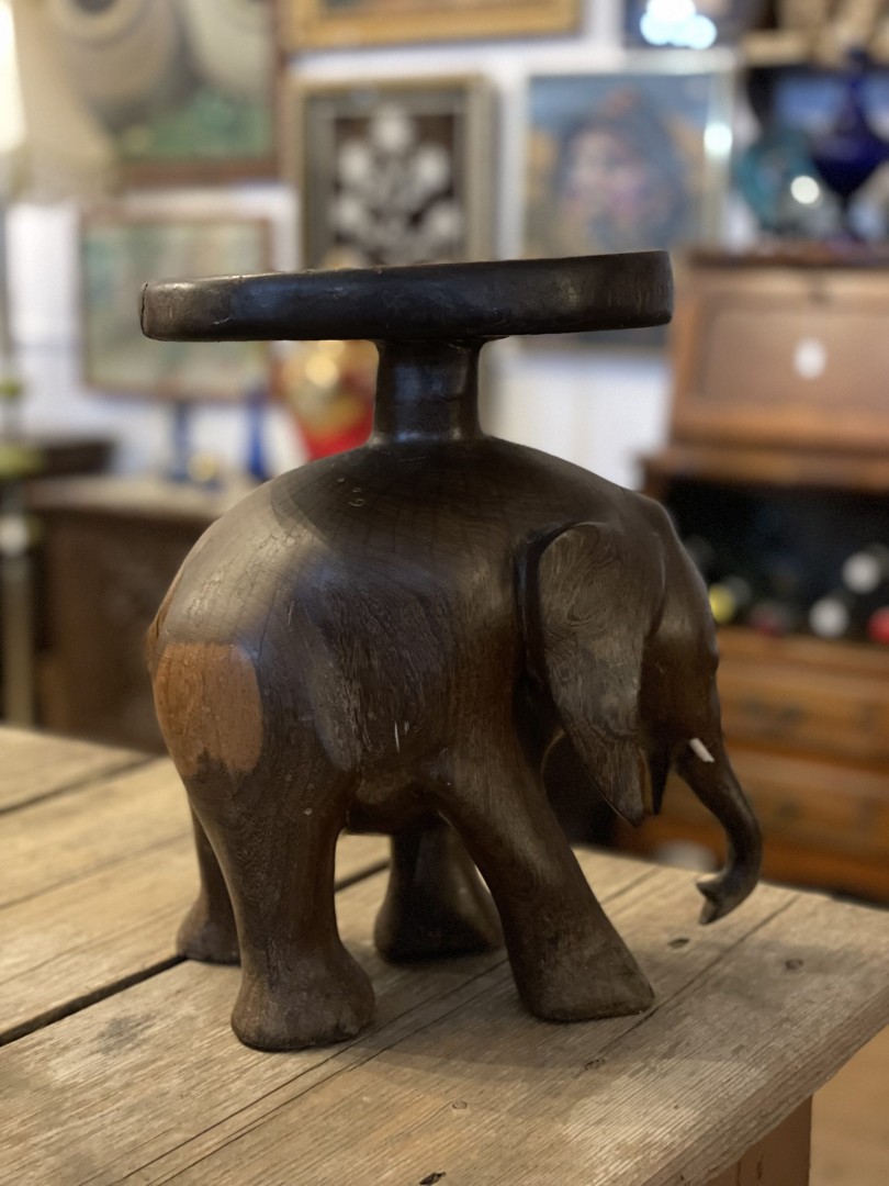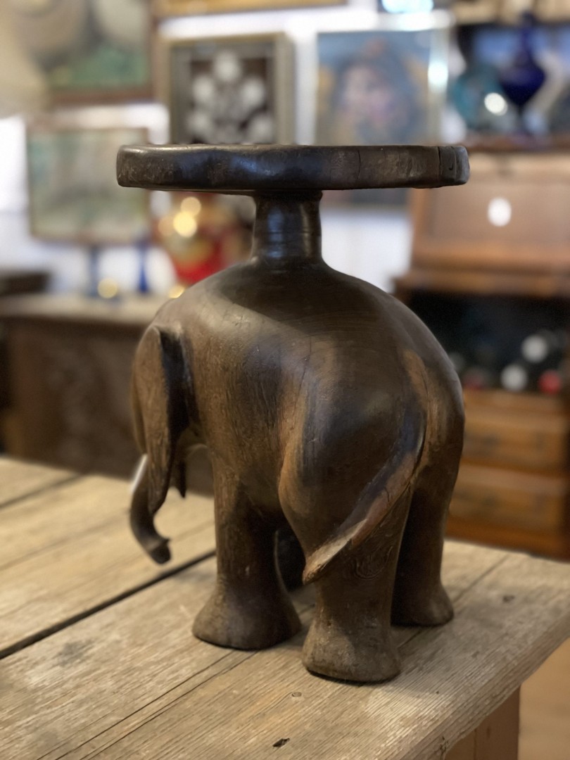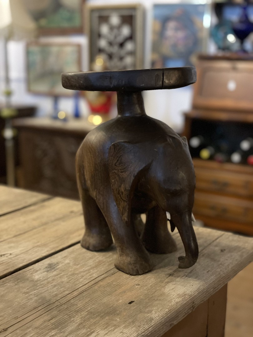 Hand-carved wooden elephant sculpture from the mid-20th century, blending cultural symbolism with artistic beauty. A perfect statement piece for any home. \n \nSpecial Aspect: \n \nThe intricate carving and the cultural representation of elephants as symbols of good fortune make this piece a captivating and meaningful work of art. This beautifully hand-carved wooden elephant sculpture is a striking example of artistic craftsmanship. Created with exquisite attention to detail, this piece captures the elegance and strength of an elephant in a lifelike pose. Likely originating in the mid-20th century, it reflects traditional artistry inspired by cultural symbolism, where elephants are revered as symbols of wisdom, strength, and good fortune. The rich patina of the wood enhances its character, making it an ideal decorative piece for any living space. \n \nThis sculpture is more than just décor—it’s a story of heritage and timeless artistry. Whether placed on a shelf, table, or as a standalone accent, it’s sure to draw admiration and add a unique charm to your home. \n \nStorytelling: \n \nImagine this elephant sculpture as the focal point of your home, exuding an aura of strength, wisdom, and serenity. Its hand-carved details tell the story of an artisan’s dedication and cultural inspiration. Let this beautiful piece become a symbol of positivity and timeless artistry in your space, inspiring admiration from all who see it.