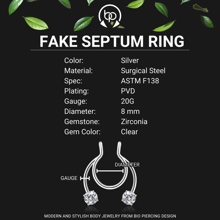 Nose Decoration Piercing Faux Ring Temporary Non-Piercing - Silver
