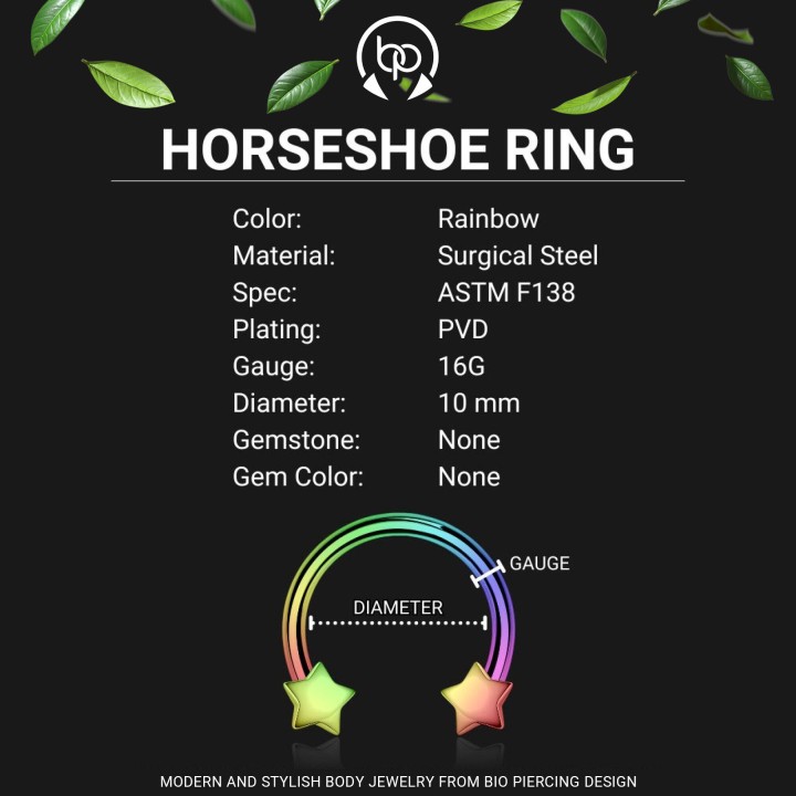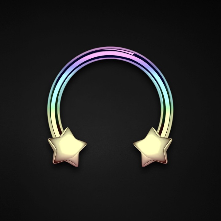 Horseshoe Hoop Cartilage Earring Circular Barbell Nose Ring - Rainbow / 16G / 10 Mm