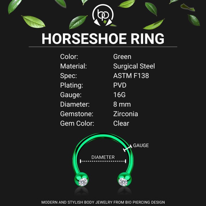 Ear Piercing Horseshoe Jewelry Circular Barbell Daith Hoop Piercing - Green / 16G / 08 Mm