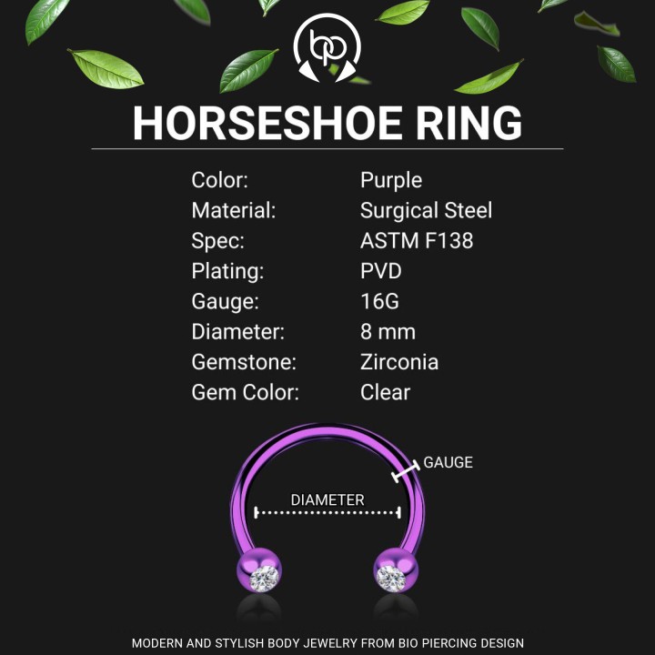 Horseshoe Earring Nose Hoop Circular Barbell Tragus Piercing Earring - Purple / 16G / 08 Mm