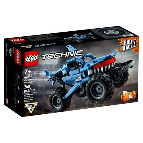 Discover an authentic replica of a Monster Jam™ fan favorite with this LEGO® Technic™ Megalodon™ (42134) pull-back truck building set for kids aged 7+. With true-to-life graphics and colors, this truck is packed with details for kids to discover. The pull-back action makes playtime exciting as kids race their truck and perform cool tricks. The fins move as the monster truck toy powers along, while the realistic shark teeth and large tires add extra realism for hours of fun.