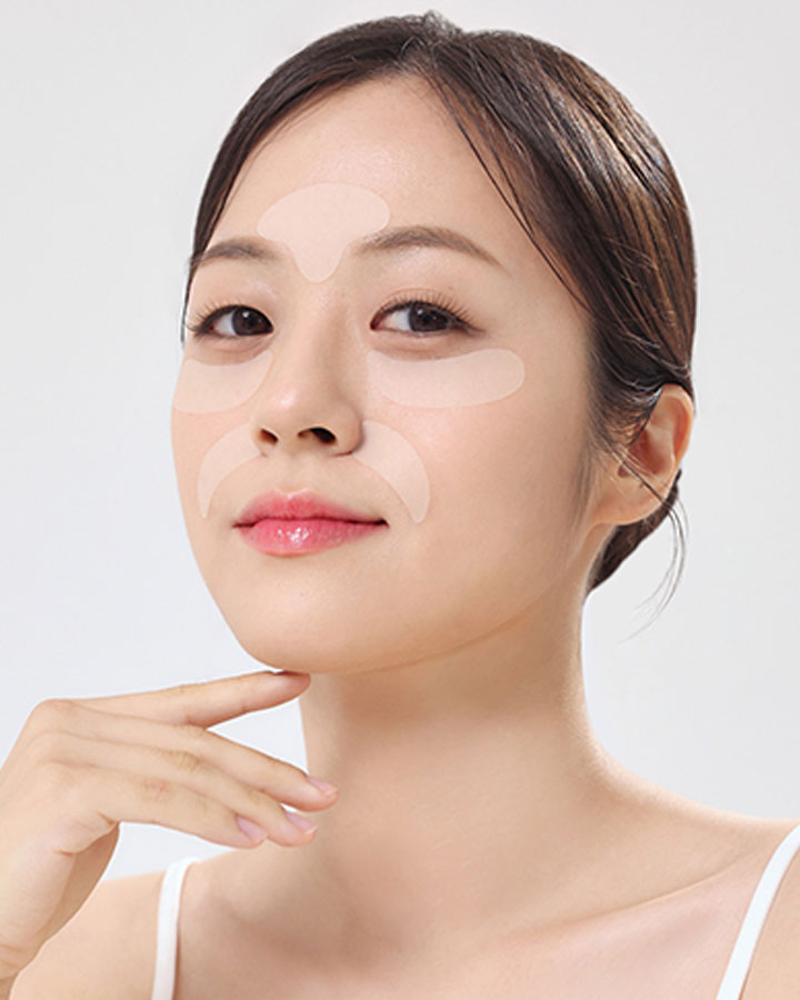 2. Take a patch. Place it over the targeted area (smile line, frown line, eye, forehead).