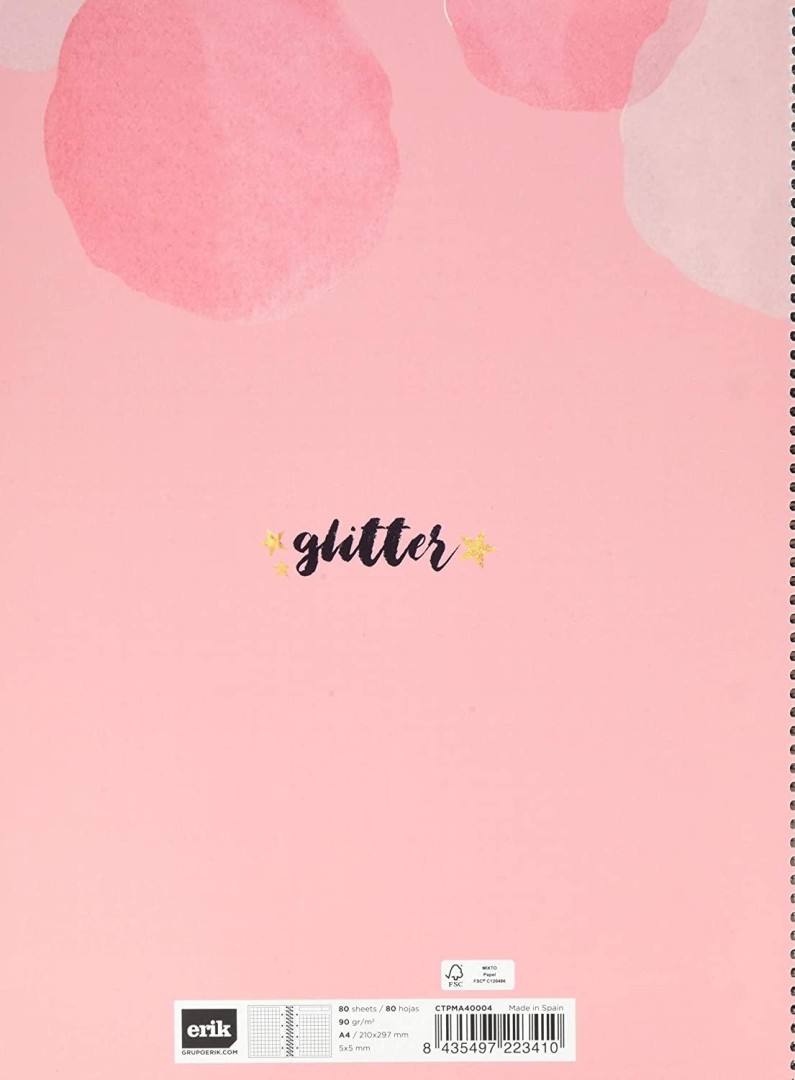 Erik Grupo Notebook CTPMA40004, A4 Polypropylene 4x4 Cover, Microperforated, Glitter Gold Dreams Checkered A4 spiral pad that adapts to your needs, ideal for everyday life. It impresses with its trendy and unique design, its workmanship and the price/performance ratio. Made of high-quality materials, with a polypropylene lid, which combines a flexible and durable concept, is ideal for intensive use. PRACTICAL AND CONVENIENT - Glitter Gold Dreams Checked Notebook is a practical and functional product, ideal for school and work. A block that impresses with its elegant design MULTIFUNCTIONAL NOTEBOOK: Collect ideas, notes or drawings in your spare time, thanks to the micro-perforation, you can file everything later conveniently. Pad A4 squared adapts perfectly to your needs thanks to its simple design and functionality Premium quality - features a polypropylene cover which gives it more flexibility and durability: it is an ideal product for intensive use. Number of sheets: 80 with micro-perforation. Ruling: 5 x 5 mm. Paper: 80 g/m². Size: 21 x 29.11 cm We take care to ensure that the products are well packaged and protected to ensure smooth delivery Erik - Our products are made only from the best materials, which are distinguished by their high quality and long-lasting quality. Always 100% official license