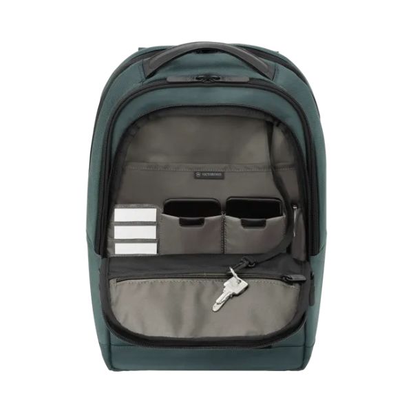 This slimline, minimalist pack accompanies you on every journey through the professional landscape; its durable exterior punctuated both by a flip-down front pocket with inserts, loops and enclosures for keys, valuables, wallets and smaller devices, and a top-loading zipped area with sections for both a laptop and an iPad.