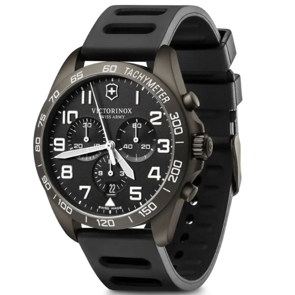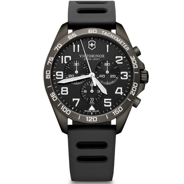 An Edgy and Masculine Masterpiece Sporty and distinctly edgy: meet our new Field Force Sport Chrono. A study in monochrome, its design DNA not only looks super fresh but is also a high functionality win. The matte PVD case and bezel add to its dark allure and are the ideal setting for the bright hands and numerals with Super Luminova® luminescent technology for 24/7 readability. To push the limits even further, the watch comes in a set with an exclusive Spartan PS knife with matte handles. A sporty, strong and iconic combo.* Swiss made watch with chronograph functions and tachymeter scale* Delivered in special packaging housing an exclusive Spartan PS knife* Has undergone 100 homologation tests and comes with a 5-year international warranty