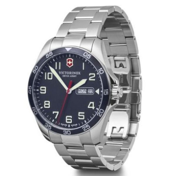 Stay Ahead of the Field At the forefront of its field, the indispensable Fieldforce boasts striking red second hands with a Swiss Army Knife-shaped counterweight, and a red cross and shield on the dial. It offers unsurpassed day and night visibility thanks to the distinct Super- Lumi Nova®-enhanced display, and pays tribute to our roots with its new take on rugged, dynamic design. Know where you are, and get where you want to be, with a Fieldforce timepiece at your side.