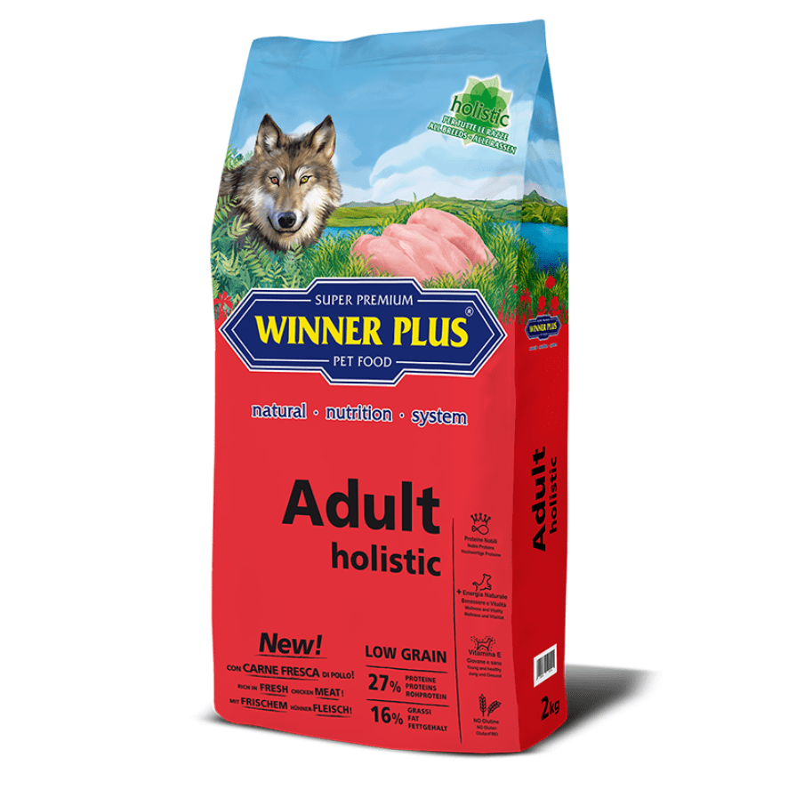 Winner Plus Adult Holistic 2kg Ξηρά Τροφή με Λίγα Σιτηρά για Ενήλικους Σκύλους με Κοτόπουλο και Ρύζι\nΞηρά τροφή από την Winner Plus, κατάλληλη για ενήλικους σκύλους. Είναι ιδανική για μια ισορροπημένη διατροφή και προσφέρει την απαραίτητη ενέργεια που χρειάζονται για τις καθημερινές τους ανάγκες. Μπορείτε να επιλέξετε τη συγκεκριμένη τροφή ανεξάρτητα από τη φυλή, καθώς ενδείκνυται για όλα τα μεγέθη σκύλων.\nΗ τροφή είναι low grain, δηλαδή έχει χαμηλή περιεκτικότητα σε σιτηρά.\n• Κυρίως συστατικό: Κοτόπουλο, Ρύζι\n• Συσκευασία: 2kg\n\n \n\nΧαρακτηριστικά\n\n Μέγεθος Όλες οι Φυλές\n Ηλικία Ενήλικοι Σκύλοι\n Κυρίως Συστατικό Κοτόπουλο, Ρύζι\n Extras με Λίγα Σιτηρά\n Δημοφιλείς Σειρές -\n\nΠοσότητα\nΤεμάχια 1 τμχ\nΣυσκευασία 2 kg\n\n\n\nEnglish Version\n\nWINNER PLUS Adult holistic WINNER PLUS Adult holistic with chicken, lamb and rice is a complete diet ideal for the special needs of sensitive dogs at any stage of their life.\n\nMade without:\nanimal protein sources other than salmon, wheat, classical grain, rice, soy, corn, aroma, eggs, dairy products, chemical colour, flavouring substances and cereals containing gluten.\n\nComposition:\nChicken 40% (of which 14% fresh chicken meat); rice; animal fat; dried lamb (4%); peas; dried sugar beet pulp (desugarized); dried potato; potato starch; brewer’s yeast; salmon oil; linseed oil; dried carob pods; inulin (source of natural fructo-oligosaccharides); herbs (marigold, fennel, chamomile, peppermint, parsley, fenugreek seed, chicory root, licorice root, carob flour ); red fruits (dog rose, raspberry, blueberry, chokeberry, apple); minerals; glucosamine.\n\nAnalytical constituents:\nCrude protein 27% Fat content 16% Crude fibre 2,40% Crude ash 6,90% Calcium 1,70% Phosphorus 1,15% Selenium 0,50 mg / kg Omega-3 (0,60%) Omega-6 (3%)\n\nAdditives per kg. Nutritional additives :\nVitamin A 20.000 I.U. Vitamin D3 1.800 I.U. Vitamin E 200 I.U. Vitamin B1 15 mg Vitamin B2 20 mg Vitamin B6 20 mg Vitamin B12 210 mcg Vitamin C 100 mg Choline chloride 675 mg Pantothenic acid 50 mg Niacin 50 mg Folic acid 7 mg Taurine 1.000 mg Biotin 1.000 mcg Copper (cupric(II)sulphate pentahydrate) 5 mg 65 mg 50 mg 35 mg 1,50 mg Zinc (zinc sulphate, monohydrate) Iron (iron (II) sulphate, monohydrate) Manganese (manganous-(II)-oxide) Iodine (calcium iodate, anhydrous) L-carnitine 500 mg\n\nTechnological additives:\nAntioxidants (Vitamin E: tocopherol extracts of natural origin)\n\nMetabolic energy:\n3.837 kcal/kg\n\nAvailables formats:\n300 gr; 2 kg; 12 kg\n\n\n\n\n\nΌλα τα προϊόντα WINNER PLUS κατασκευάζονται στη Γερμανία ακολουθόντας τα υψηλότερα δυνατά πρότυπα και προδιαγραφές!\n\n\n\nΤα εκτροφεία, είτε βρίσκονται στην όμορφη Κύπρο είτε σε διάφορα μέρη του κόσμου, επιλέγουν με απόλυτη εμπιστοσύνη την πρωτοποριακή τροφή Winner Plus\n\nΓια τα καλύτερα σκυλιά στον κόσμο η επιλογή είναι πάντα Winner Plus .Δοκιμάστε το καλύτερο για τον σκύλο σας