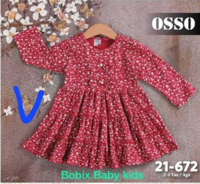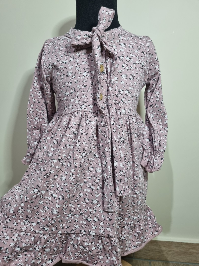 Long Sleeve Dress With Flowers For 5-6 Year's Olds Colored Red Flowered